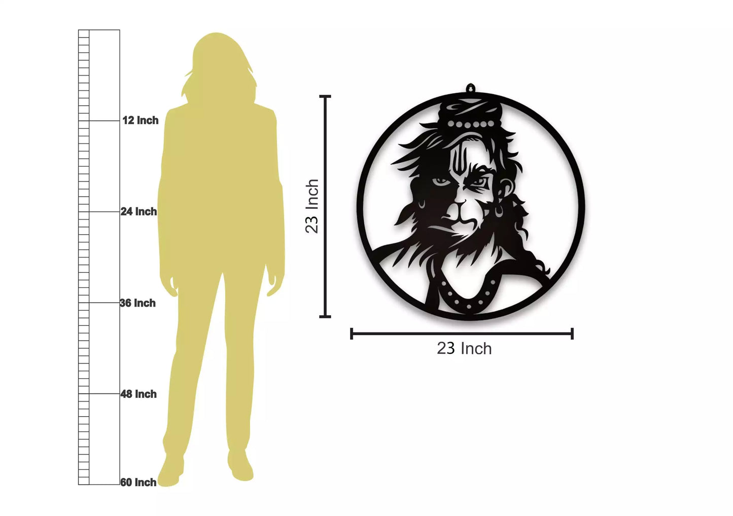 • Majestic Design: Intricately crafted silhouette of Bajrang Bali in a dynamic pose, symbolizing protection, energy, and faith.
