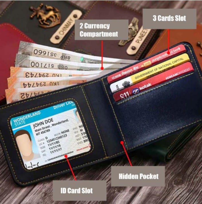 Premium Quality Personalised Men Wallet Select Charm to patch on the wallet and other items in combo 2 Currency Component, 3 Cards slot, ID Card Slot, Hidden Pocket.