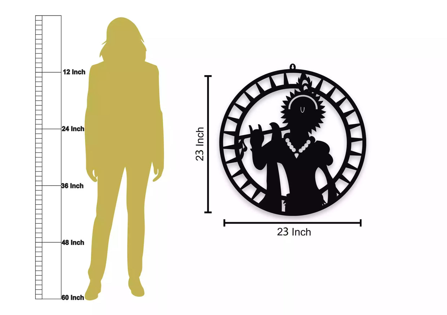 • Artistic Design: Features an intricately crafted silhouette of Lord Krishna, often depicted playing the flute, symbolizing love, harmony, and divine joy